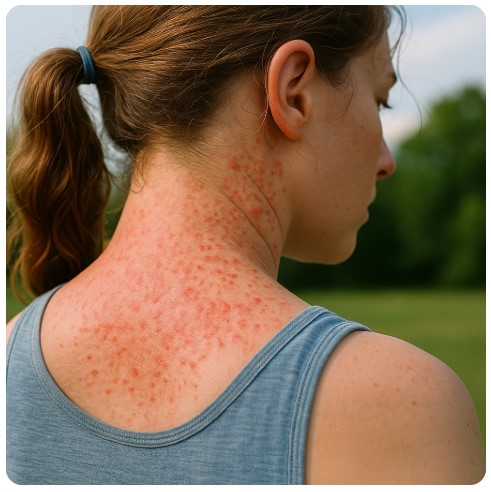예를 들어, 등은 피지 분비량이 많고 옷과의 마찰이 잦은 부위로, 여름철에는 땀띠와 여드름이 동시에 발생하는 대표적인 부위입니다. 이마나 목 뒤 역시 마찬가지로, 모자 착용, 머리카락과의 접촉 등으로 인해 피지와 땀이 함께 고이면서 피부에 자극을 주고 트러블을 유발합니다. 이처럼 피지와 땀은 상호 작용하며 모공을 막고 염증을 유발하는 원인이 되기 때문에, 단순히 땀만 관리해서는 땀띠를 완전히 예방할 수 없습니다.